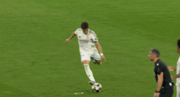 进攻的发起,依旧来自于贝林厄姆,他分球后前插,接应门将的长传,漂亮停球后转身摆脱送直塞。可惜姆巴佩的停球质量跟贝林厄姆差距有点大,随后他又无视了维尼修斯的前插。