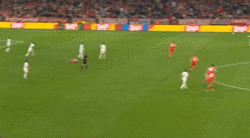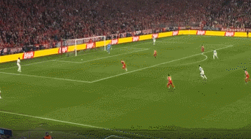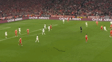 拜仁整体队形太高,纵深空间留的很大。姆巴佩突然转型猎豹,利用自己的冲刺,接应到了维尼修斯的妙传,让皇马取得半场3比2的领先,追平了两回合总比分。